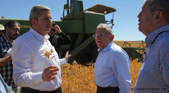 Kayseri Büyükşehir Belediyesi'nin tarım alanında verdiği tohum desteğini Sosyal Belediyecilik Projesi ile Bünyan topraklarında değerlendirilerek ihtiyaç sahiplerine ücretsiz dağıtmak üzere ekimi yapılan Aspir'in hasadını, Kayseri Büyükşehir Belediye Başkanı Memduh Büyükkılıç ile Bünyan Belediye Başkanı Özkan Altun birlikte yaptı.