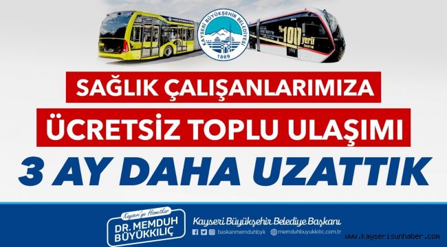 Kayseri Büyükşehir Belediye Başkanı Dr. Memduh Büyükkılıç, sağlık çalışanlarına ücretsiz toplu ulaşım desteğini 30 Haziran tarihine kadar uzattıklarını ifade ederek,...