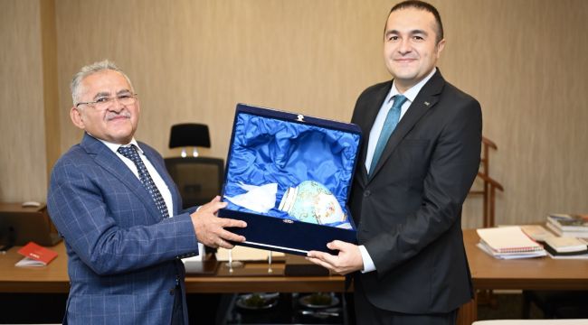 Başkan Büyükkılıç, Albayrak’a ziyaret anısına işlemeli vazo hediye ederken, misafirperverliklerinden dolayı teşekkür etti.