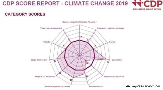 Büyükşehir Belediyesi şirketlerinden Kayseri Ulaşım A.Ş. önemli bir başarıya imza atarak 'Karbon Ayak İzi'ni hesaplatıp, bağımsız kuruluşlara doğrulatmak suretiyle Karbon Saydamlık Projesi'ne (CDP) dâhil oldu. Dünya genelinde yüz trilyon doların üzerinde bir varlığı yöneten toplam bin 73 şirketin değerlendirildiği bu seneki CDP raporlamasın da, Kayseri Ulaşım A.Ş. , Karbon Saydamlık Projesi (CDP) 2020 puanı "B-Management" olarak açıklandı. Şirket, güncel raporda "Kapsam 3 Emisyonları ve Hedefler kategorisinde "A-Leadership seviyesine ulaşarak, Fırsatları Tespit Etme, Enerji, Finansal Planlama ve İş Etkisi kategorilerinde ise B seviyesi" puanına ulaştı.