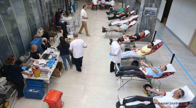 Kayseri Büyükşehir Belediyesi personeli, Erciyes Üniversitesi Kan Merkezi'ne kan bağışında bulundu.