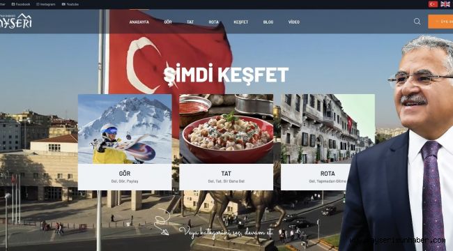 Büyükşehir Belediye Başkanı Dr. Memduh Büyükkılıç, Kayseri'yi dünyaya tanıtmak için büyük gayret gösteriyor. Bu konuda projeler üreten Başkan Büyükkılıç'ın 'Akıllı Şehir Kayseri' projesi kapsamında yer alan ve kenti tanıtmak adına büyük bir görev üstlenen 'Anadolu'nun Başkenti Kayseri' adlı web sitesi, Kayseri'deki doğal ve tarihi yerlerin yanı sıra şehre dair gastronomi, kültür ve turizme dair pek çok konuda adeta bir turizm rehberi gibi görev üstleniyor.