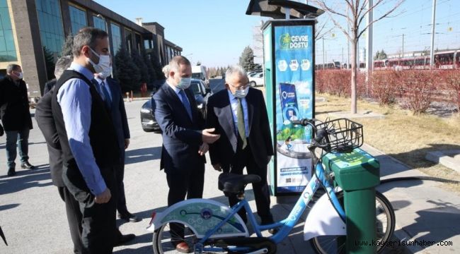 Kayseri Büyükşehir Belediye Başkanı Dr. Memduh Büyükkılıç, Ulaşım A.Ş. tarafından geliştirilen ve son teknolojik altyapıya sahip olan Kaybis Versiyon-2 Akıllı Bisiklet Paylaşım Sistemi'ni yerinde inceledi.