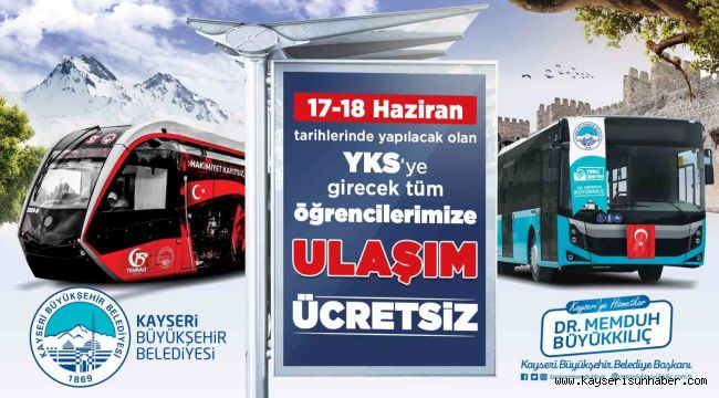 Kayseri Büyükşehir Belediye Başkanı Dr. Memduh Büyükkılıç, 17-18 Haziran tarihlerinde farklı oturumlarda düzenlenecek Yükseköğretim Kurumları Sınavı'nda (YKS) adaylar için toplu ulaşımın ücretsiz olduğunu açıkladı.