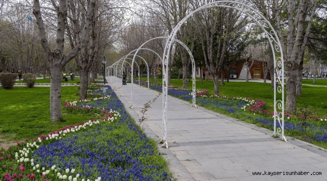 Kayseri Büyükşehir Belediyesi ekiplerinin şehrin bir çok noktasına diktiği yüzbinlerce lale soğanı ve sümbüllerin çiçek açmasıyla rengarenk, görsel bir şölen oluştu.