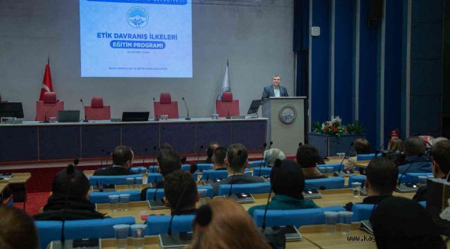 Kayseri Büyükşehir Belediyesi İnsan Kaynakları ve Eğitim Daire Başkanlığı tarafından 'Etik Davranış İlkeleri Eğitim Programı' düzenlendi. Programda konuşan Büyükşehir Belediyesi Genel Sekreter Yardımcısı Serdar Öztürk, "Kurumsal kimliğimizi daha da yapıcı ve kalıcı hale getireceğiz" dedi.