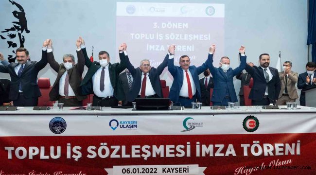 Kayseri Büyükşehir Belediye Başkanı Dr. Memduh Büyükkılıç, Ulaşım A.Ş.'de bin 49 çalışanı kapsayan toplu iş sözleşmesine imza attı. Başkan Büyükkılıç, bayram havasında...