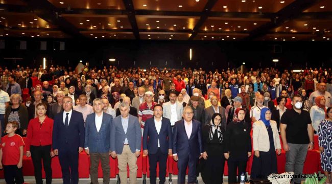 Büyükşehir Belediyesi tarafından 1 Ekim Dünya Yaşlılar Günü etkinlikleri çerçevesinde Kadir Has Kültür ve Sanat Merkezi'nde gerçekleşen programa Başkan Büyükkılıç ve eşi Dr. Necmiye Büyükkılıç ile annesi İlmiye Büyükkılıç ve ailesinin yanı sıra Kayseri Valisi Gökmen Çiçek, Vali Yardımcısı Mehmet Sadık Tunç, Kocasinan Kaymakamı İlhan Abay, Kayseri İl Milli Eğitim Müdürü Ayhan Teltik, Aile ve Sosyal Hizmetler Bakanlığı Kayseri İl Müdürü Cüneyd Özdemir ile ulu çınarlar ve aileleri katıldı. Saygı duruşunda bulunulması ve İstiklal Marşı'nın okunması ile başlayan programda konuşan Büyükşehir Belediye Başkanı Dr. Memduh Büyükkılıç, "Burada sizleri sadece 1 gün hatırlayan bir anlayış değil, Allah'a şükürler olsun her gün hatırlayan ve sizlere layık olmaya çırpınan bir ekibin, bir anlayışı var" dedi. Birlik, beraberlik mesajı veren Başkan Büyükkılıç, yaşlı vatandaşların dua kaynağı olduğunu vurgulayarak şöyle konuştu;