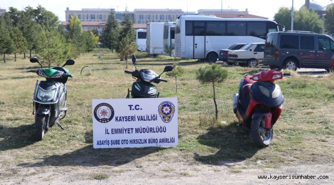 Edinilen bilgiye göre; kentte meydana gelen motosiklet hırsızlığı olaylarının aydınlatılabilmesi için Oto Hırsızlık Büro Amirliği ekiplerince çalışma başlatıldı. Yapılan çalışmalarda elde edilen 2 motosiklet ve 1 elektrikli bisikletin Kayseri Bölge Kriminal Polis Laboratuvarı ile yapılan çalışmalar sonucunda çalıntı olduğu tespit edildi. Piyasa değeri toplam 100 bin TL değerindeki motosiklet ve elektrikli bisiklet sahiplerine teslim edildi. Olay ile ilgili olarak şüpheliler Ü.Y., Y.İ., A.İ. ve B.K. hakkında işlem başlatıldı.
