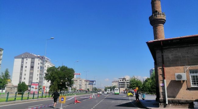 Kayseri'nin Melikgazi ilçesinde yıldırımın isabet ettiği cami minaresinde hasar oluştu.