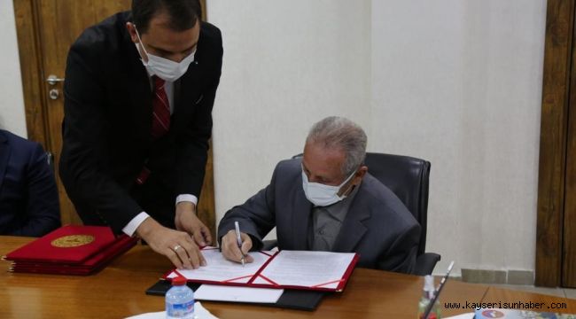Kayseri Valisi Şehmus Günaydın, Kocasinan ilçesi Cırgalan Mahallesine yapılacak olan Aile Sağlığı Merkezi hizmet binasının yapımını üstelenen hayırsever Hacı Veli Demir ile protokol...