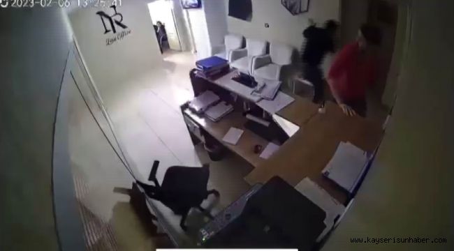Kahramanmaraş'ın Elbistan ilçesinde meydana gelen 7.6 büyüklüğündeki depremin şiddeti Kayseri'deki bir ofiste güvenlik kameralarına yansıdı.
