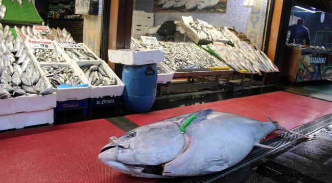Sivas Caddesi'nde bulunan balıkçı tezgahındaki 1 buçuk metre uzunluğundaki yaklaşık 300 kiloluk dev orkinos balığı, görenlerin ilgisini çekiyor. Hamsilerin denizde sürükleyerek getirdiğini söyleyen balıkçı Ercan Tunç; "Orkinos balığının kilosu 200 kiloya yakın. Hamsinin ağına takılmış. Her zaman olmadığı ve pek bilinmediği için vatandaşlardan çok soru var; 'bu ne, nereden geldi, ne balığı?' gibi sürekli soruyorlar. Biz de 'orkinos' yazıp buraya koyduk" dedi.