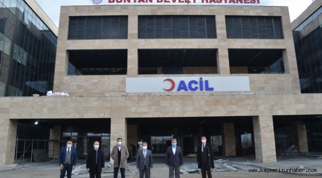 İl Sağlık Müdürü Doç. Dr. Ali Ramazan Benli, Bünyan Belediye Başkanı Özkan Altun ile beraber yapımına devam edilen 75 yataklı Bünyan İlçe Devlet Hastanesi'nde incelemelerde bulundu.