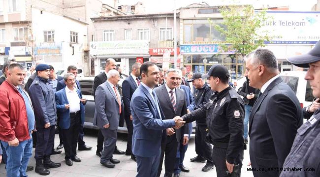 Develi'de protokol üyeleri, ilçe meydanında düzenlenen tören ile bayramlaşırken, kurumları da tek tek ziyaret edip çalışanların bayramını kutladı.