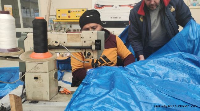 Develi'de deprem bölgesi için çadır üretimine başladılar
