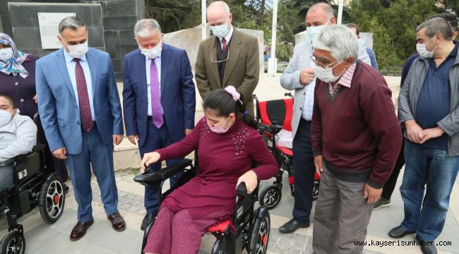 Develi Kaymakamlığı, Develi Belediyesi ve Öksüt Madenciliğin destekleriyle Develi Cumhuriyet Meydanında 35 engelli aileye bayram hediyesi olarak engellerini kaldırmaya yardımcı olmak adına akülü sandalye verildi.