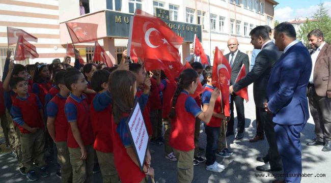 Öğrencilerle birlikte farkındalık oluşturmak için karşıdan karşıya geçen ilçe protokolü, daha sonra Muammer Kocatürk İlkokulunu ziyaret etti.