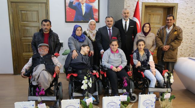Engellilere akülü arabaları hediye edildikten sonra Başkan Mehmet Cabbar Develi’ye yaptığı desteklerden dolayı Avrupa Kayserililer Birliği Başkanı Muzaffer Polat’a teşekkür plaketi ve Türk Bayrağı hediye etti.