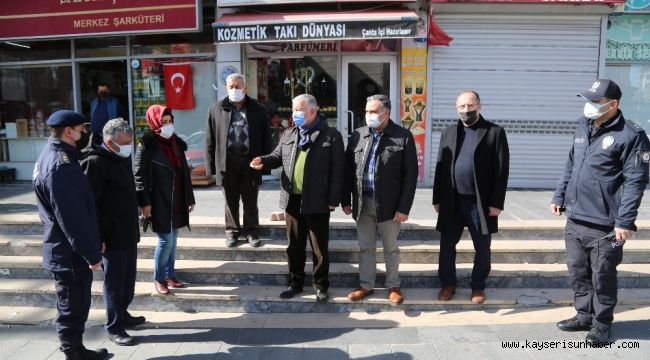 Develi ilçe protokolü, sokağa çıkma kısıtlamalarında açık olan iş yerlerine denetim yaptı.
