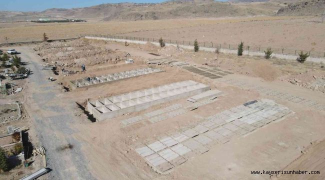 Develi İlçe Mezarlığına Kayseri Büyükşehir Belediyesinin desteğiyle 224 adet yeni mezar açma çalışmaları tüm hızıyla devam ediyor.