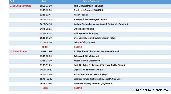 Organize Sanayi Kongre ve Fuar Merkezi'nde gerçekleştirilecek olan 'Devlet Teşvikleri Tanıtım Günleri' 21 Mayıs tarihinde başlayacak. Cumhurbaşkanlığı İletişim Başkanlığınca 21-22 Mayıs 2022 tarihlerinde Kayseri Organize Sanayi Kongre ve Fuar Merkezi'nde gerçekleştirilecek olan programa katılmak isteyen öğrenci ve vatandaşlar için raylı sistemler cumartesi ve pazar günü ücretsiz olacak. Ayrıca yurtlarından önlerinden de ücretsiz otobüsler kaldırılacak.