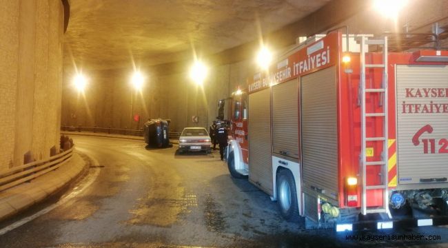 Kayseri'nin Melikgazi ilçesinde sürücüsünün direksiyon hakimiyetini kaybettiği güvenlik bariyerine çarptıktan sonra yan yattı.