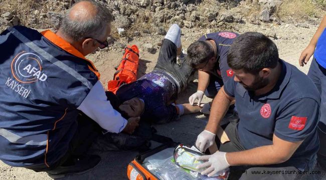 Edinilen bilgiye göre, ilçede bulunan Ortaseki Mevkii'nde arkadaşıyla beraber bisiklet turuna çıkan M.M.H. (21), toprak yoldan aşağı indiği esnada dengesini kaybederek yere düştü. Düşmenin etkisiyle yaralanan gencin arkadaşı, durumu ihbar etti. İhbar üzerine bölgeye jandarma, sağlık, AFAD ve UMKE ekipleri sevk edildi. Yaralı gencin yerini tespit eden ekipler, arazi araçları ile bulunduğu yere ulaştı. Boynundan ve kolundan yaralanan M.M.H., AFAD ekiplerinin de yardımı ile burada yapılan ilk müdahalesinin ardından UMKE aracıyla aşağıya indirildi. Ambulansa alınan talihsiz genç, Erciyes Üniversitesi Tıp Fakültesi acil servisine kaldırılarak tedavi altına alındı.