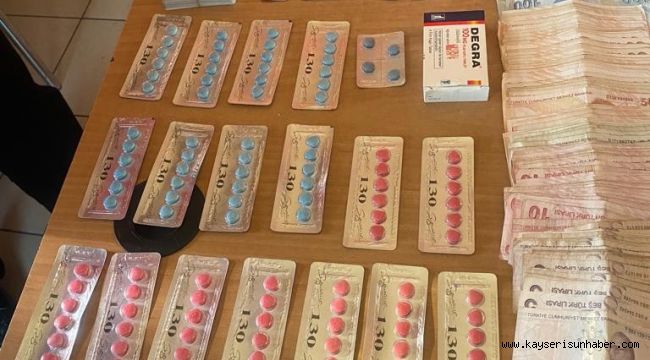 Kayseri İl Emniyet Müdürlüğü Asayiş Şube Müdürlüğüne bağlı Güven Timleri Büro Amirliğince yapılan çalışmalarda durumundan şüphelenilen şahıstan çok sayıda cinsel içerikli hap ele geçirildi.