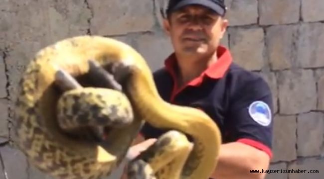 Kayseri Büyükşehir Belediyesi İtfaiye Daire Başkanlığı ekipleri duvardaki 3 metrelik dev yılanı yakaladı. Yılan yakalama timi, yılın ilk altı ayında 51 yılanı yakalayarak doğaya saldı.