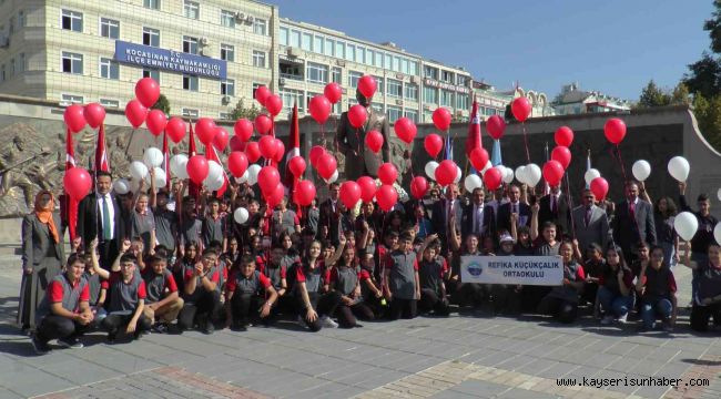 Kayseri'de 2022-2023 Eğitim-Öğretim yılının başlaması nedeniyle çelenk koyma töreni düzenlendi. Törene katılan öğrenciler, yeni eğitim yılını uçan balonlarla karşıladı.