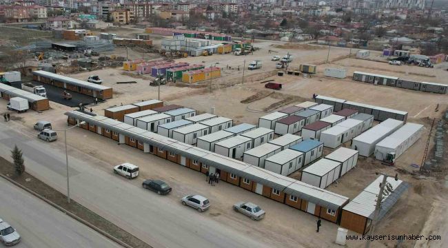 77 işyerini 4 günde tamamlayarak esnaflara teslim eden Talas Belediyesi, 300 konteynerlik yaşam alanını da hızlı şekilde inşa ediyor. İçerisinde sosyal tesislerden anaokuluna, çamaşırhaneden mescide birçok yaşamsal ünitenin yer alacağı alanda, bir yerleşim bölgesinde olması gereken her ayrıntı düşünülüyor.