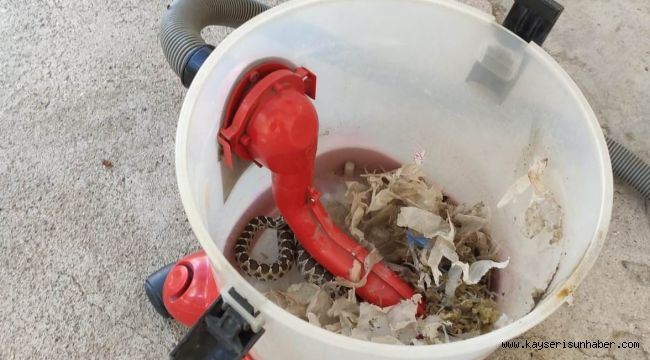 Edinilen bilgiye göre, Melikgazi ilçesine bağlı Battalgazi Mahallesi'nde meydana gelen olayda bir kadın, temizlikten önce elektrikli süpürgeyi kontrol etmek istedi. Süpürgenin içerisinde yılan olduğunu fark eden kadın, itfaiye ekiplerinden yardım istedi.