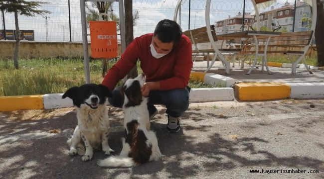Kayseri Yeşilhisar İlçe Emniyet Müdürlüğü personeli, karayolundaki 2 sokak köpeğine sahip çıktı.