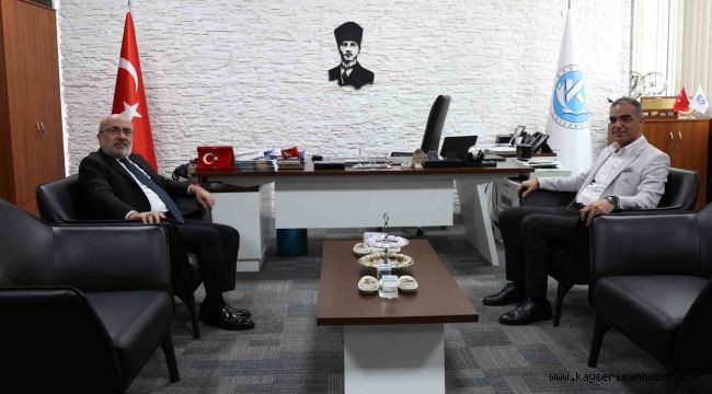 Erciyes A.Ş. Yönetim Kurulu Başkanı Hamdi Elcuman, Kayseri Üniversitesi (KAYÜ) Rektörü Prof. Dr. Kurtuluş Karamustafa'yı ziyaret etti.