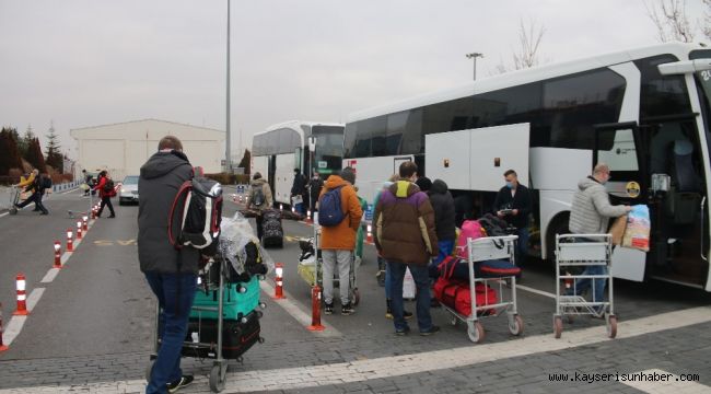 Ukrayna Havayolları'na ait uçakla Erkilet Havalimanı'na inen turist kafilesi, pandemi tedbirleri uygulanarak Erciyes Kayak Merkezi'ne ulaşarak, otellerine yerleşti.