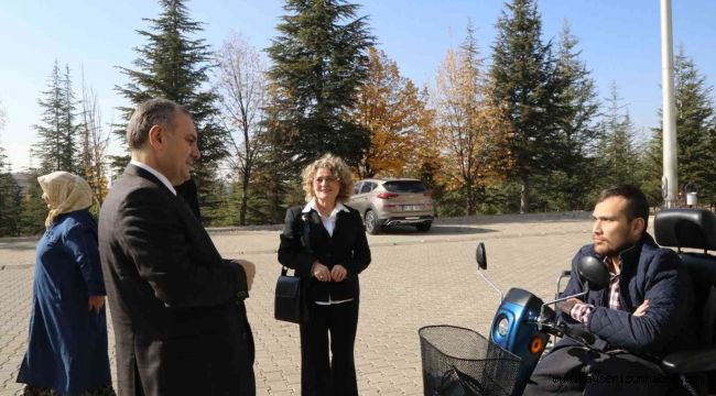Erciyes Üniversitesi (ERÜ) Edebiyat Fakültesi öğrencisi Abdulsamet Sert'e Umut Köprüsü Hollanda Yardımlaşma ve Dayanışma Vakfı tarafından temin edilen engelli akülü aracı Rektör...