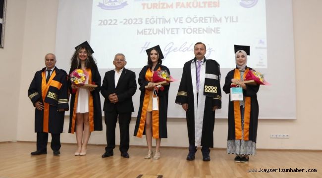 Turizm Fakültesi Konferans Salonunda gerçekleştirilen mezuniyet törenine; Kayseri Büyükşehir Belediye Başkanı Dr. Memduh Büyükkıkıç, Erciyes Üniversitesi Rektör Vekili Prof. Dr. Hakan Aydın, Turizm Fakültesi Dekanı Prof. Dr. Kenan Güllü ile akademisyenler, öğrenciler ve aileler katıldı. Kayseri Büyükşehir Belediye Başkanı Dr. Memduh Büyükkılıç törende yaptığı konuşmada Erciyes Üniversitesinin, Kadim bir şehir olan Kayseri'nin önemli bir değeri olduğunu söyledi. Konuşmasında öğrencilere seslenen Başkan Dr. Büyükkıkıç; "Bundan sonraki hayatınızda üniversitenizi ve Kayserimizi sahiplenmenizi sizlerden rica ediyorum. Kendinizi geliştirin ve mutlaka yabancı dilinizi geliştirin" dedi. Turizm Fakültesi Dekanı Prof. Dr. Kenan Güllü ise konuşmasında fakülteleri hakkında bilgiler vererek mezun olan öğrencilere bundan sonraki hayatlarında başarılar diledi. Konuşmaların ardından mezun öğrencilere diplomaları verildi.