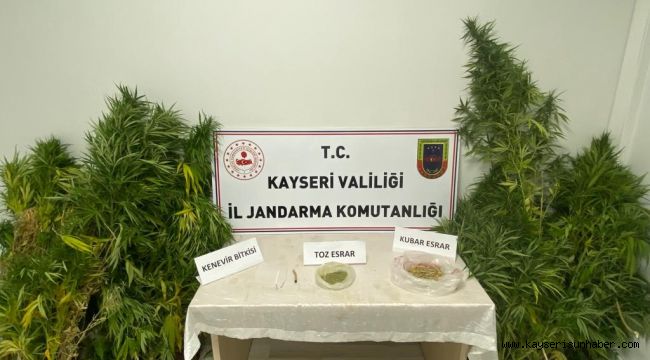 Kayseri'de jandarma ekipleri tarafından yapılan çalışmalarda evinin bahçesinde kenevir yetiştirdiği tespit edilen bir kişi yakalandı.