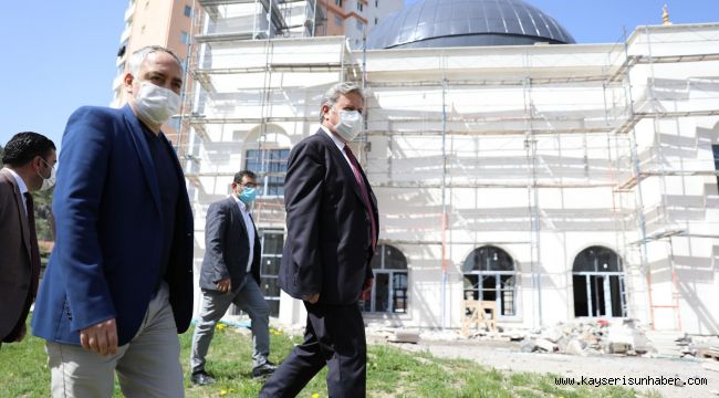 Melikgazi Belediye Başkanı Dr. Mustafa Palancıoğlu, Battalgazi Mahallesi'nde yapımı devam eden Fatma-Kemal Şallıoğlu camisini inceledi.