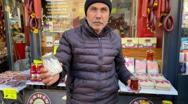 Kayseri'de sertliğiyle ve çene yapısına birçok faydasıyla bilinen kenger sakızının kilosu 2 bin 500 TL'den satılıyor.