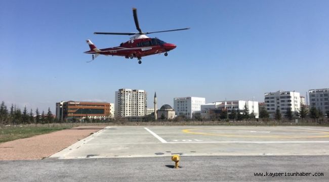 Kayseri'de felç geçiren adam, hava ambulansı ile şehir merkezine getirildi.