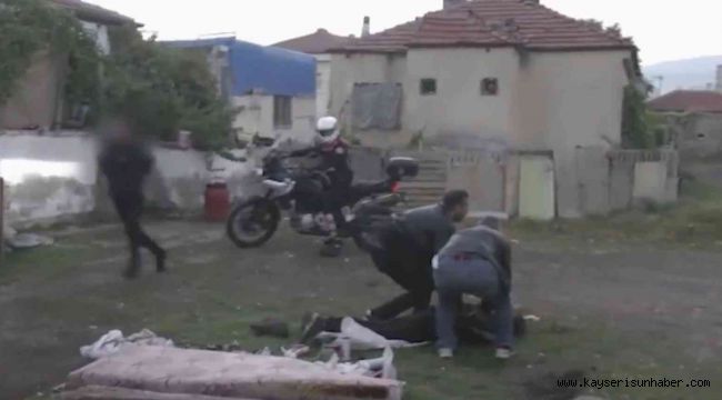 Kayseri'de polis ekipleri tarafından yapılan çalışmalarda bağ evlerinden hırsızlık yapan 8 kişi suçüstü yakalanırken, o anlar kameraya yansıdı.
