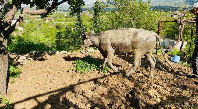 Edinilen bilgiye göre, ilçeye bağlı Beğendik Mahallesi'nde kaybolan ineğini arayan vatandaş, hayvanın foseptik çukuruna düştüğünü görünce itfaiyeden yardım istedi. Vatandaşın ihbarı üzerine bölgeye gelen Kayseri Büyükşehir Belediyesi İtfaiye Daire Başkanlığı ekipleri, yaklaşık 1 saatlik çalışmanın ardından ineği çukurdan çıkardı.