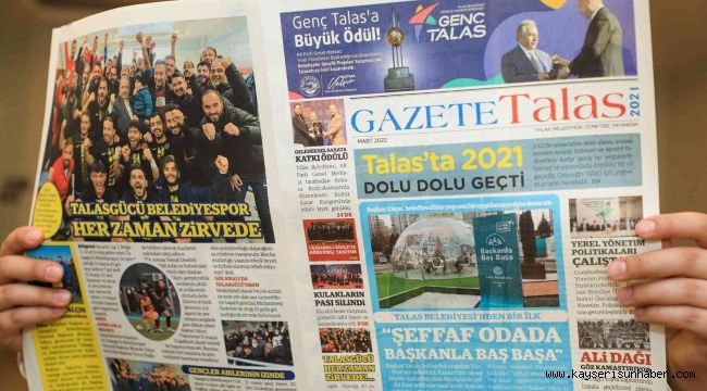 Tamamı renkli 32 sayfadan oluşan Gazete Talas'ın kapağında Talas Belediyesi'nin Cumhurbaşkanı Recep Tayyip Erdoğan'dan aldığı 'Genç Talas Ödülü' ile Başkan Mustafa Yalçın'ın uygulamaya koyduğu ve büyük beğeni toplayan 'Şeffaf Odada Başkanla Baş başa' konusu yer alıyor. Talas Belediyesi'nin son dönemde aldığı ödüllerin de yansıtıldığı gazetenin bu sayısında ayrıca 2021 yılında gerçekleştirilen hizmet ve yatırımlara detaylı olarak yer veriliyor.