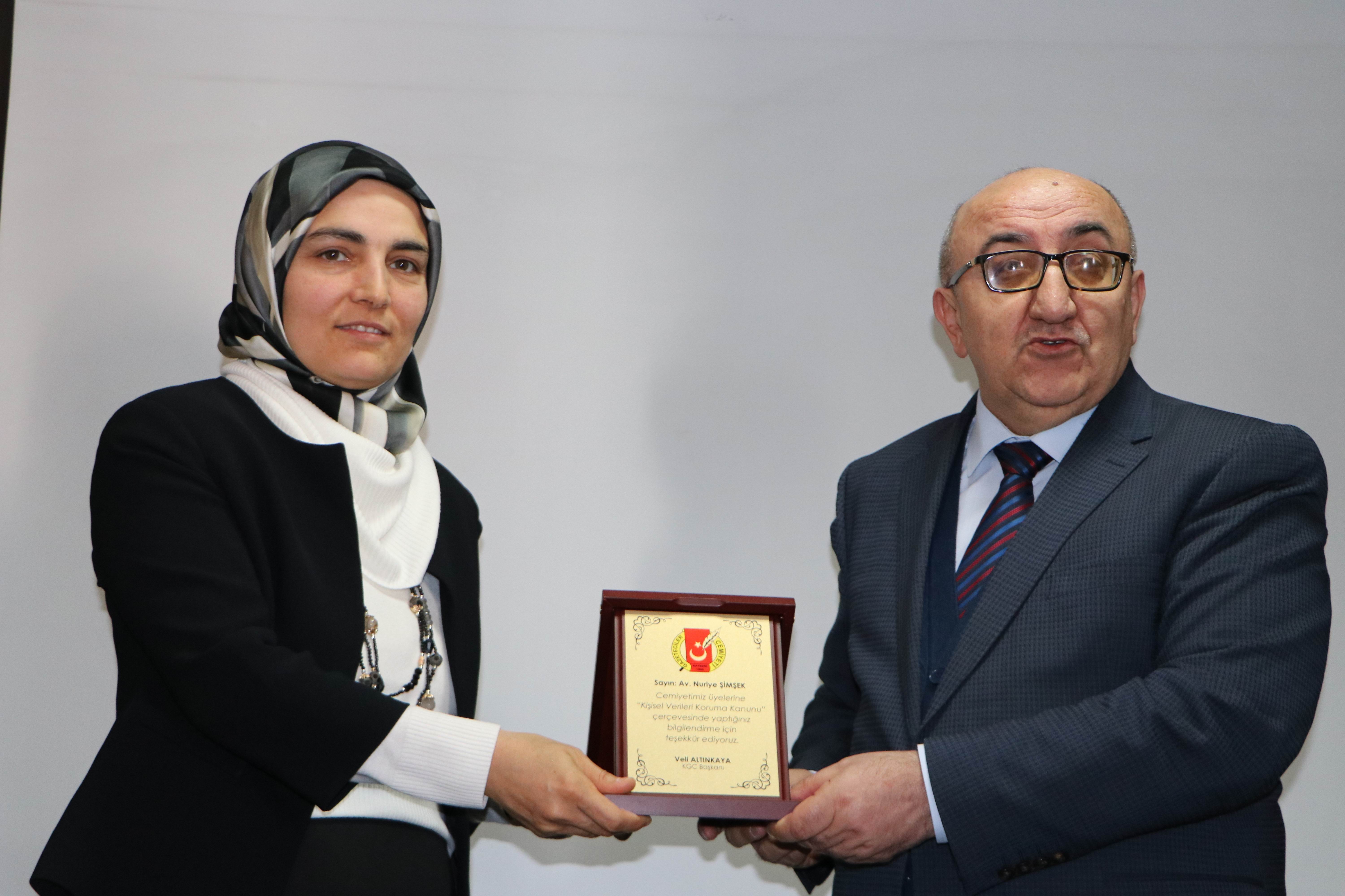 Seminerin sonunda katkılarından dolayı Avukat Arabulucu Nuriye Şimşek’e plaket verildi.