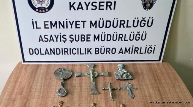 Kayseri İl Emniyet Müdürlüğü Asayiş Şube Müdürlüğü Yankesicilik ve Dolandırıcılık Büro Amirliği'ne bağlı güven timlerince yapılan çalışmalarda tarihi eser olduğu...