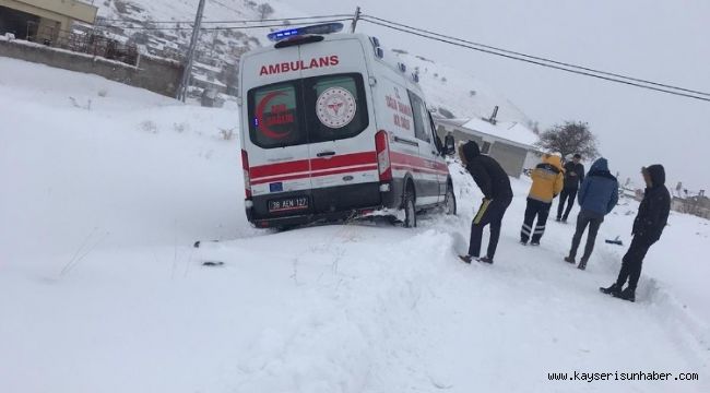 Edinilen bilgiye göre Kayseri'nin Talas ilçesine bağlı Kepez mahallesinden hasta nakleden 38 AEN 127 plakalı 112 aracı, sabah saatlerinde etkili olan kar yağışı nedeniyle kara saplanarak yan yattı.