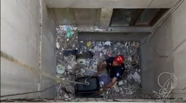 Kayseri'nin Kocasinan ilçesinde havalandırma boşluğuna düşen kedi, itfaiye ekipleri tarafından kurtarıldı.