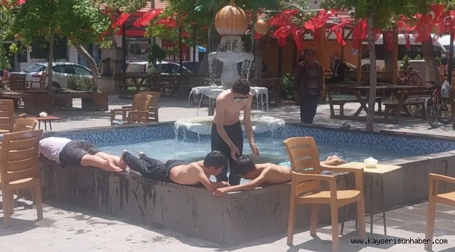 Kayseri'nin Tomarza ilçesinde hava sıcaklığının artmasını fırsat bilen çocuklar süs havuzuna girerek serinledi.